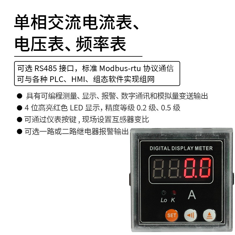 194系列數(shù)顯單相交流電流表、電壓表、頻率表,是一種具有可編程測(cè)量、顯示、報(bào)警、數(shù)字通訊和模擬量變送輸出等功能的智能儀表,廣泛應(yīng)用變電站自動(dòng)化、配電自動(dòng)化、智能建筑、自動(dòng)化生產(chǎn)線、測(cè)試臺(tái)等。真有效值測(cè)量,精度高,穩(wěn)定性好。互感器變比可通過儀表按鍵現(xiàn)場(chǎng)設(shè)置,使用方便靈活。